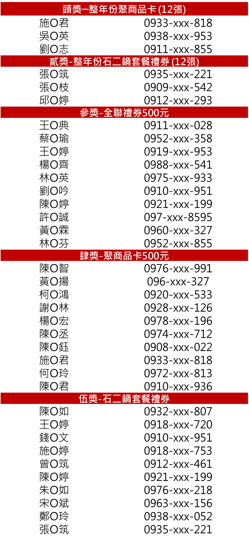 •頭獎-整年份聚商品卡(12張,價值$6,000 元) ,共3名。
